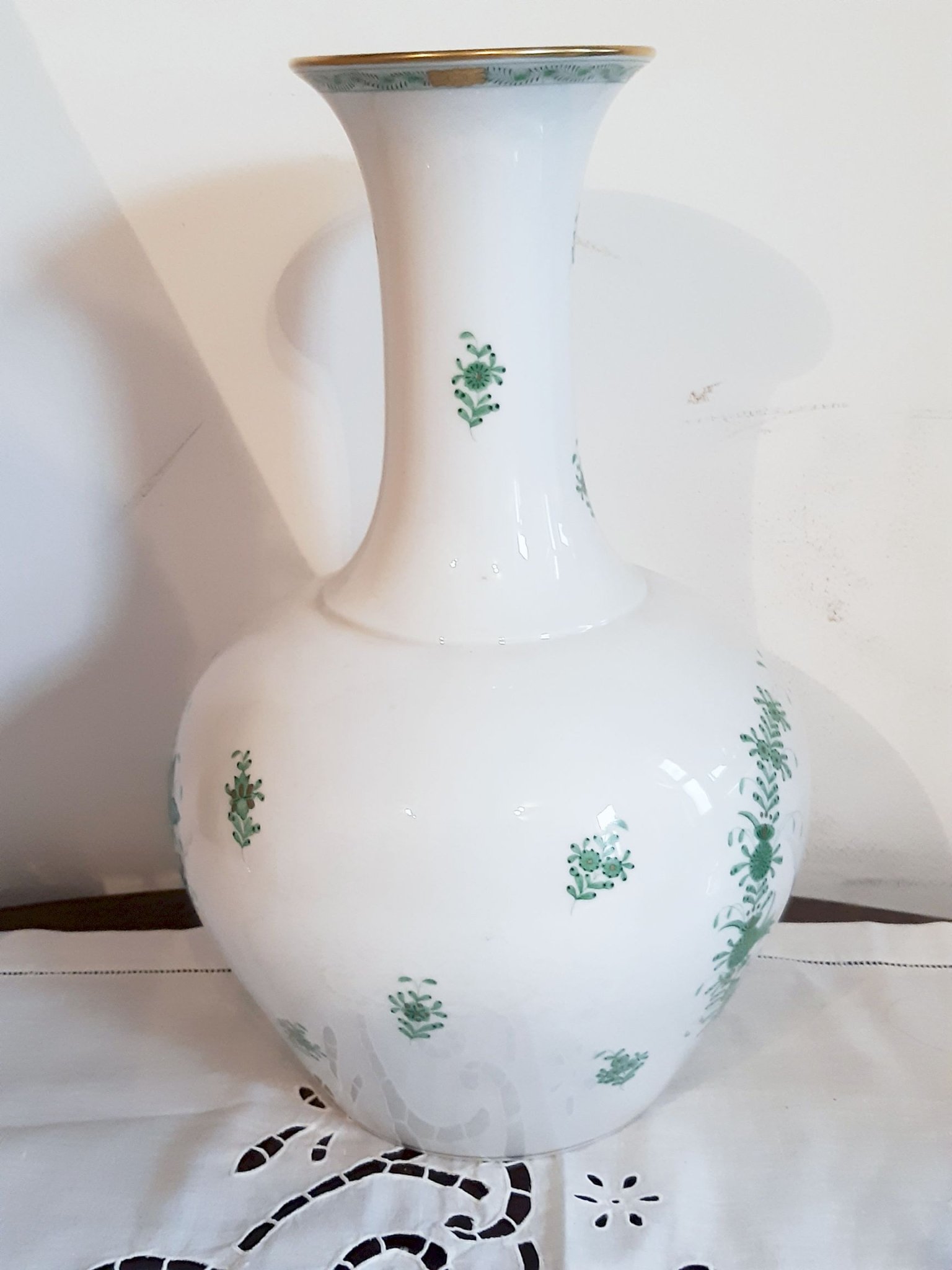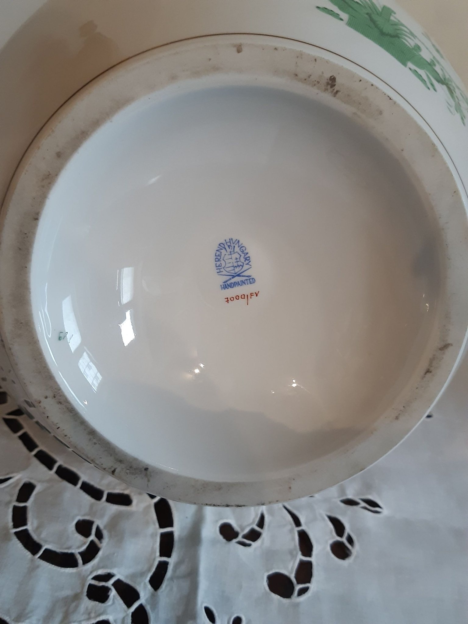 Herendi zöld indiai kosaras nagyváza, 40 cm, hibátlan állapotban.