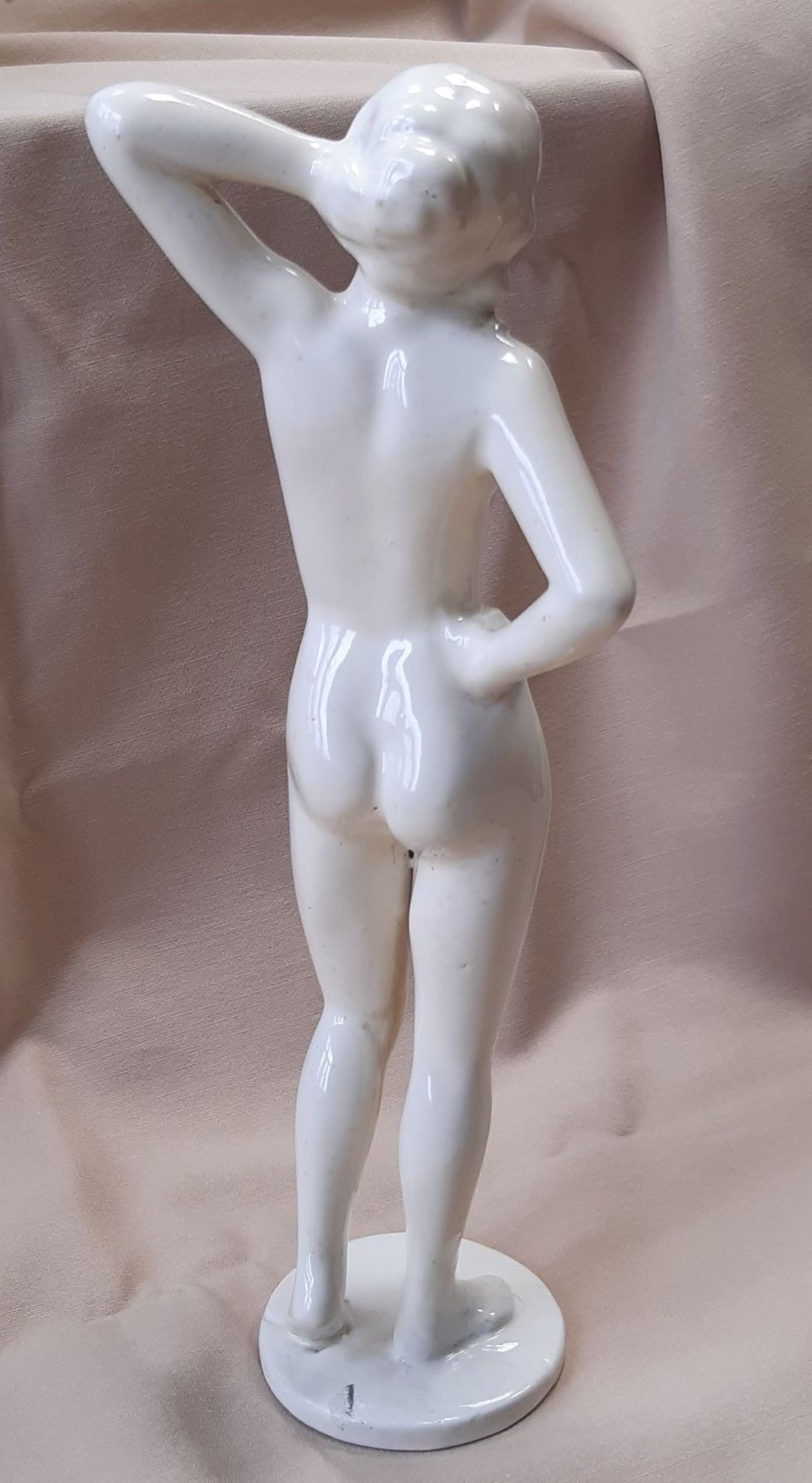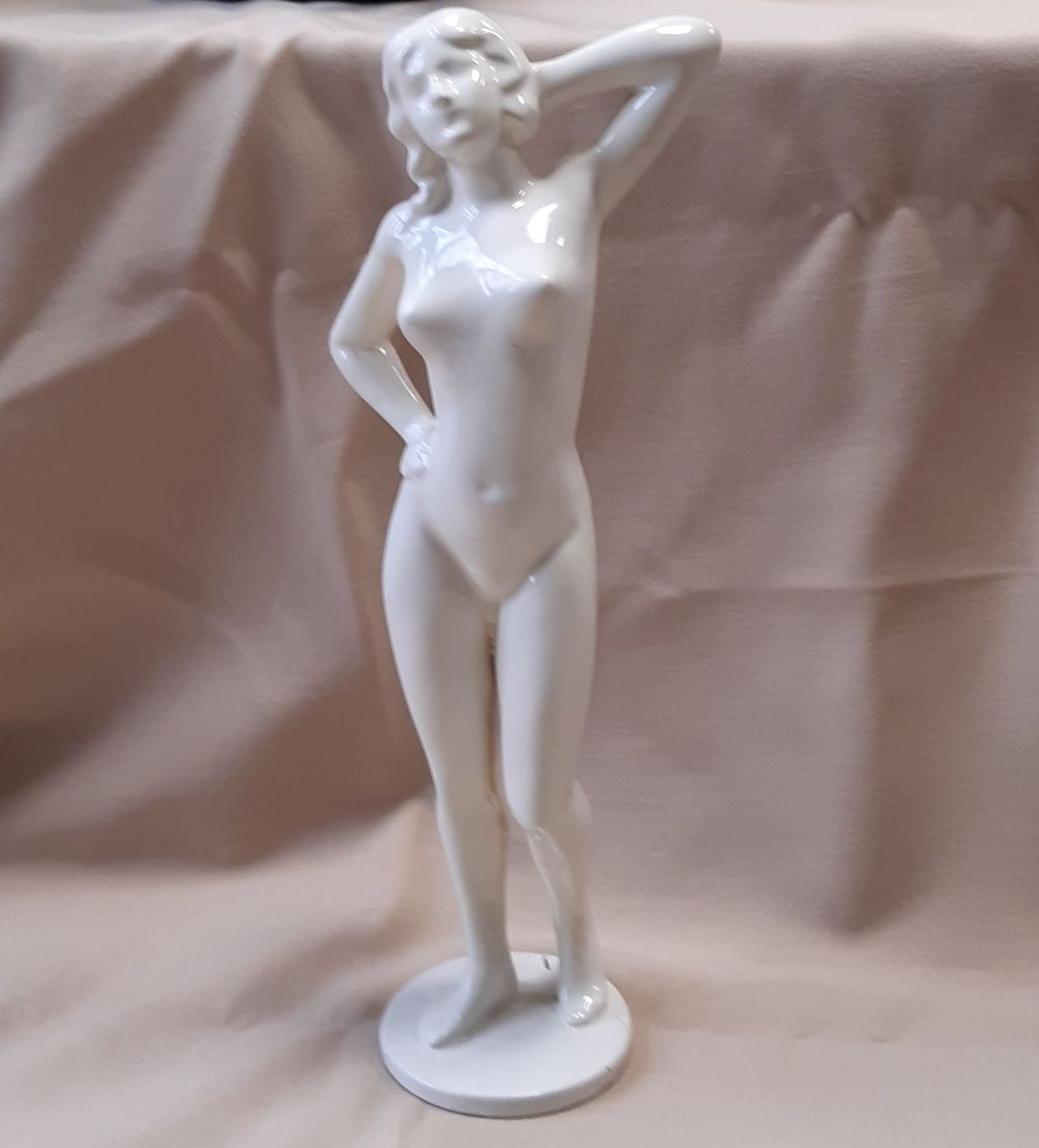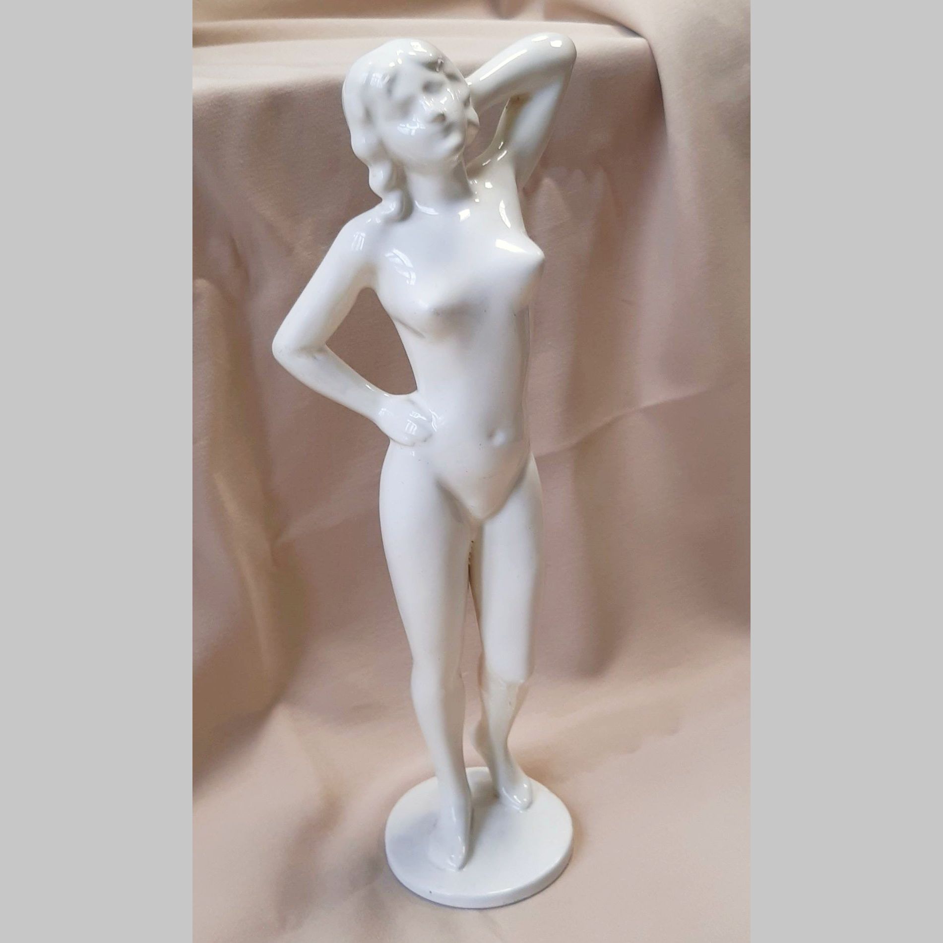Fehér mázas kerámia női akt. Hibátlan, 29 cm magas. Jel nélküli.