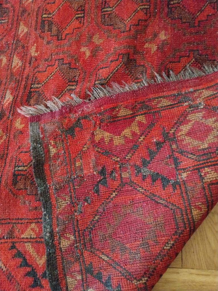 Nagyméretű (315 x 222 cm), kézi csomózású afgán gyapjúszőnyeg, restaurált.