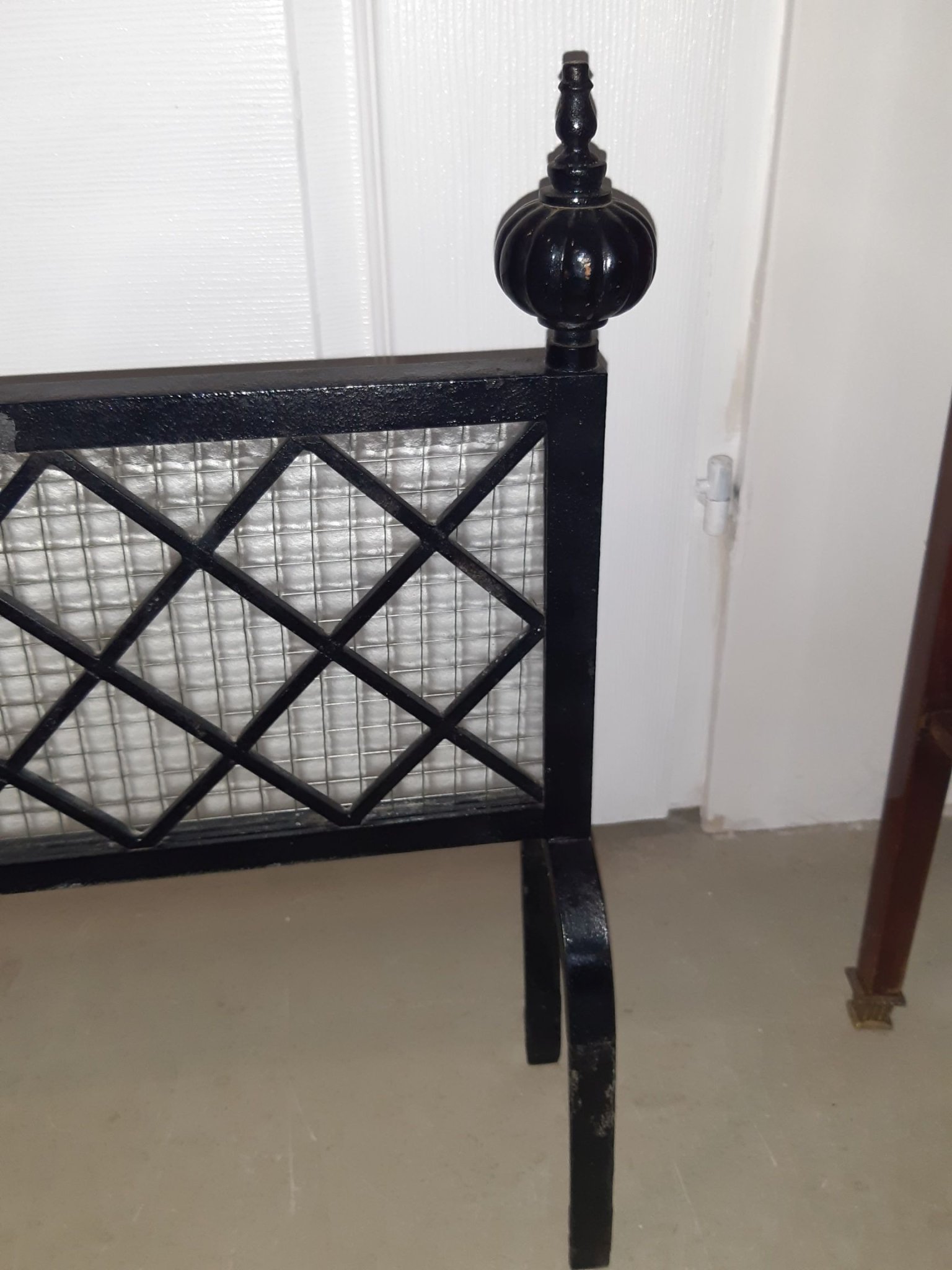 Öntöttvas, üvegezett szikrafogó, kandallóparaván. Magassága 51 cm, szélessége: 75 cm.