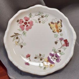 Zsolnay porcelán lepkés/pillangós virágos minikaspó