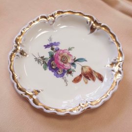Schlegelmilch német porcelántálka, aranyozott, virágmintás