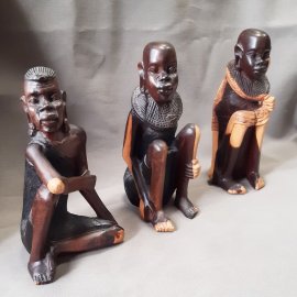 Afrikai törzsi faragott fafigurák, hibátlan állapotban, magasságuk 20 cm. Egyesével is megvásárolhatóak.