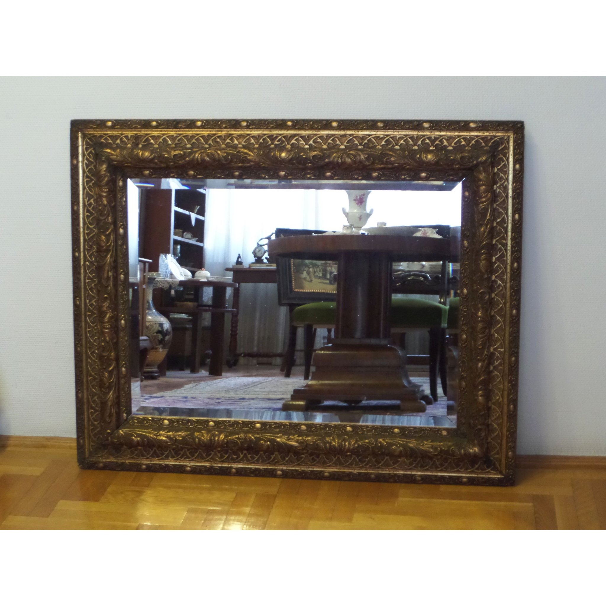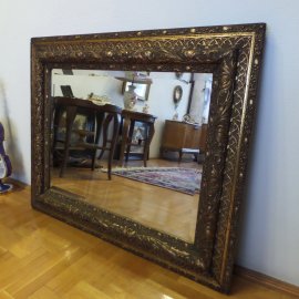 82x105 cm méretű tükör, 25mm-es fazettázással, 150 mm-es aranyozott tavirózsa és inda mintás keretben hibátlan állapotban