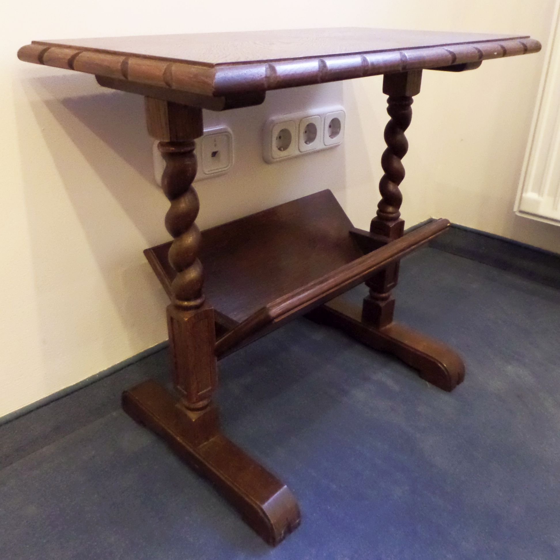Bieder telefonasztalka újságtartó polccal. Enyhén használt, de jó állapotban. Magassága 56 cm, asztallap 60x34 cm.