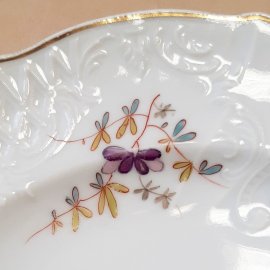 Pfeiffer & Löwenstein (PLS Geschützt aljfeliratú) cseh porcelán lapostányér, 1 db, bogáncsvirággal, ép, enyhén kopott, átmérője 24,5 cm.