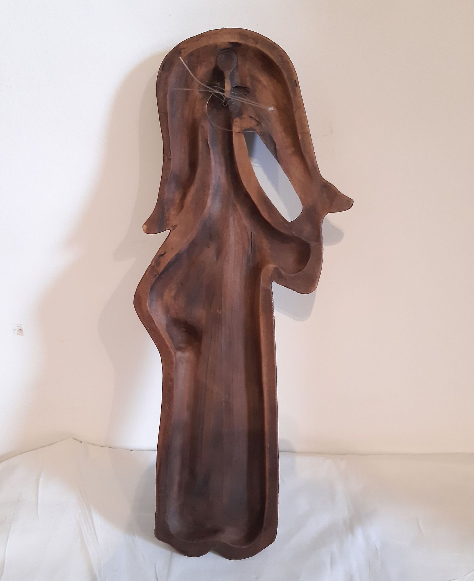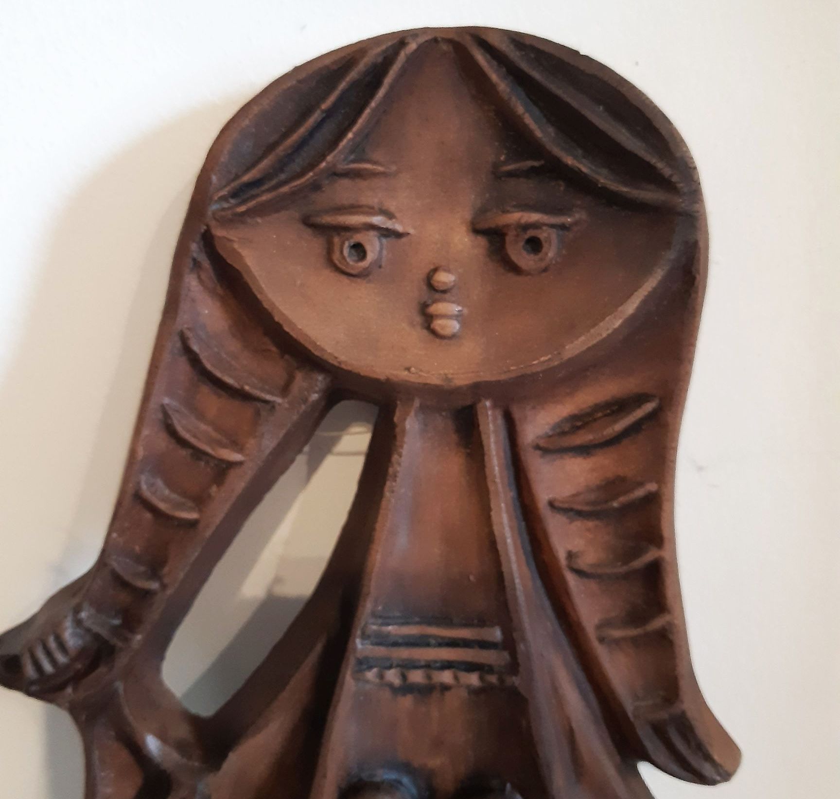 Fali gyertyatartó kerámia lányfigura. Jelöletlen. 37 cm magas, 15 cm széles.