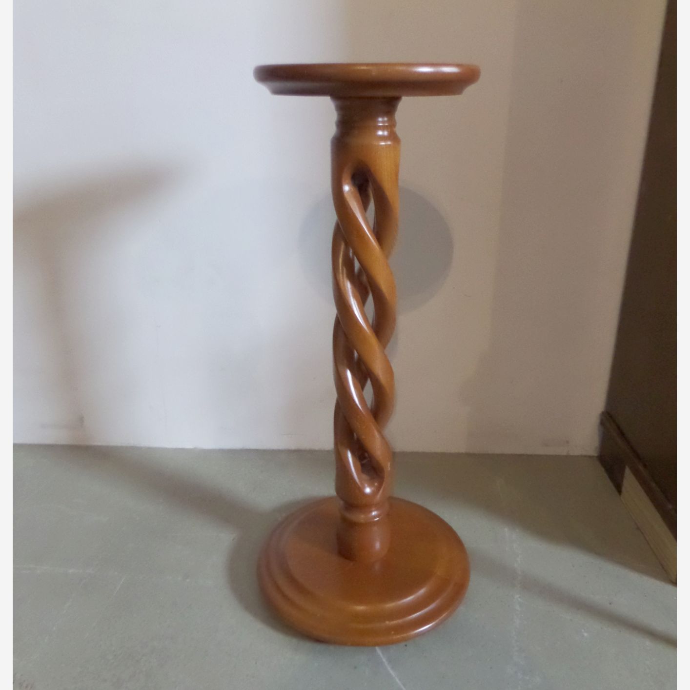 Faragott, csavart fa virágtartó állvány lábakon, hibátlan állapotban. Magassága: 60 cm Átmérő: 21,5 cm