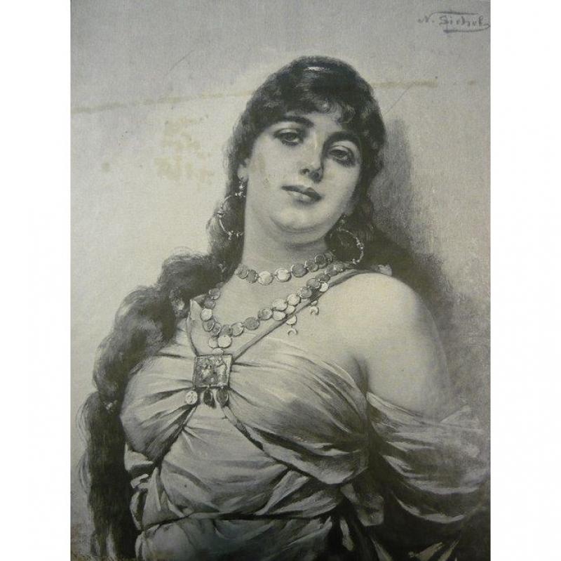 Grafikai nyomat - Női Portré. Méretek: 32 x 24 cm