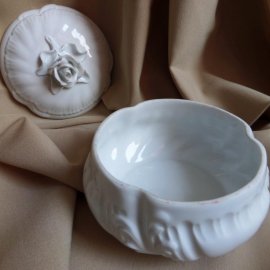 Herend white rose bonbonniere, with rose knob, diameter: 11.5 cm