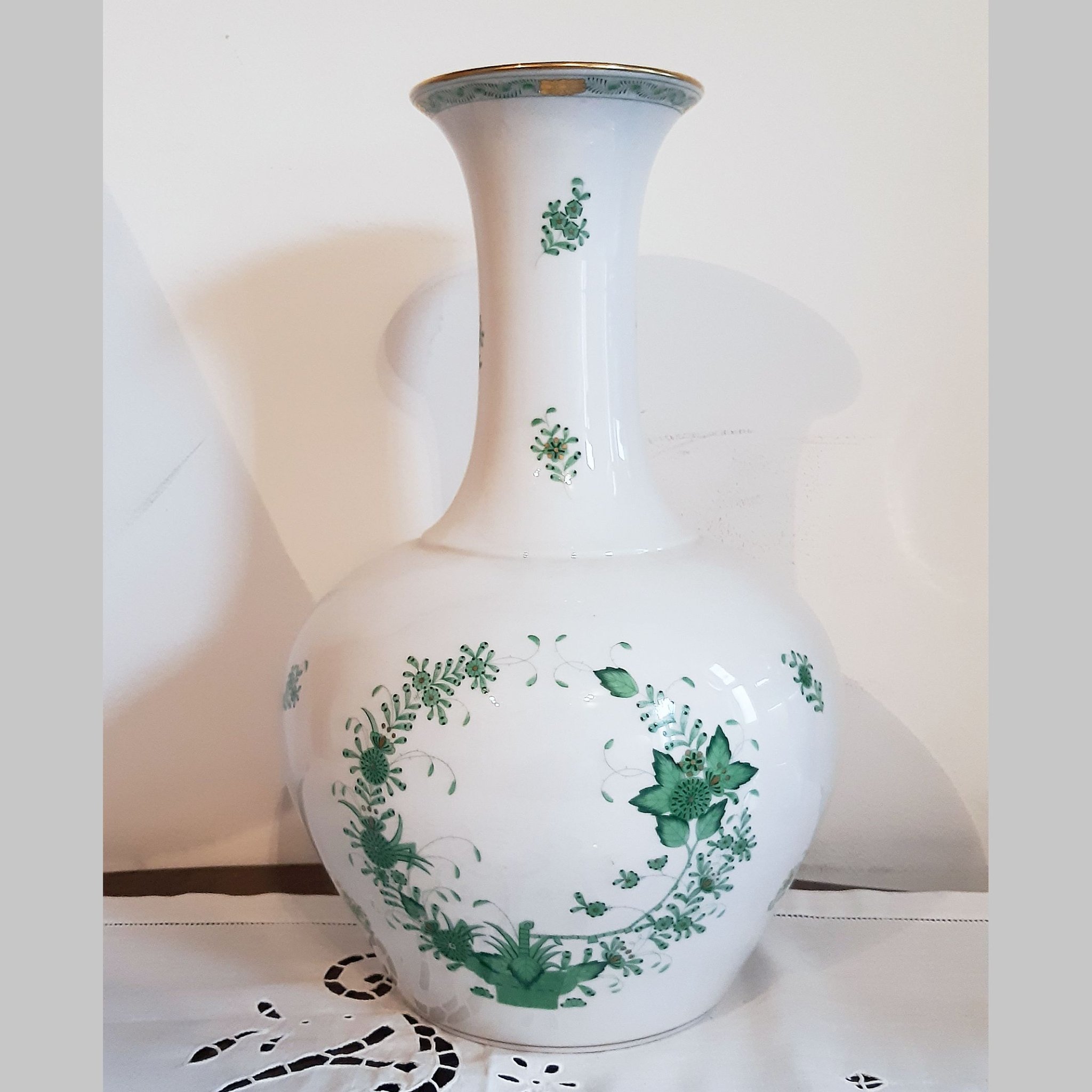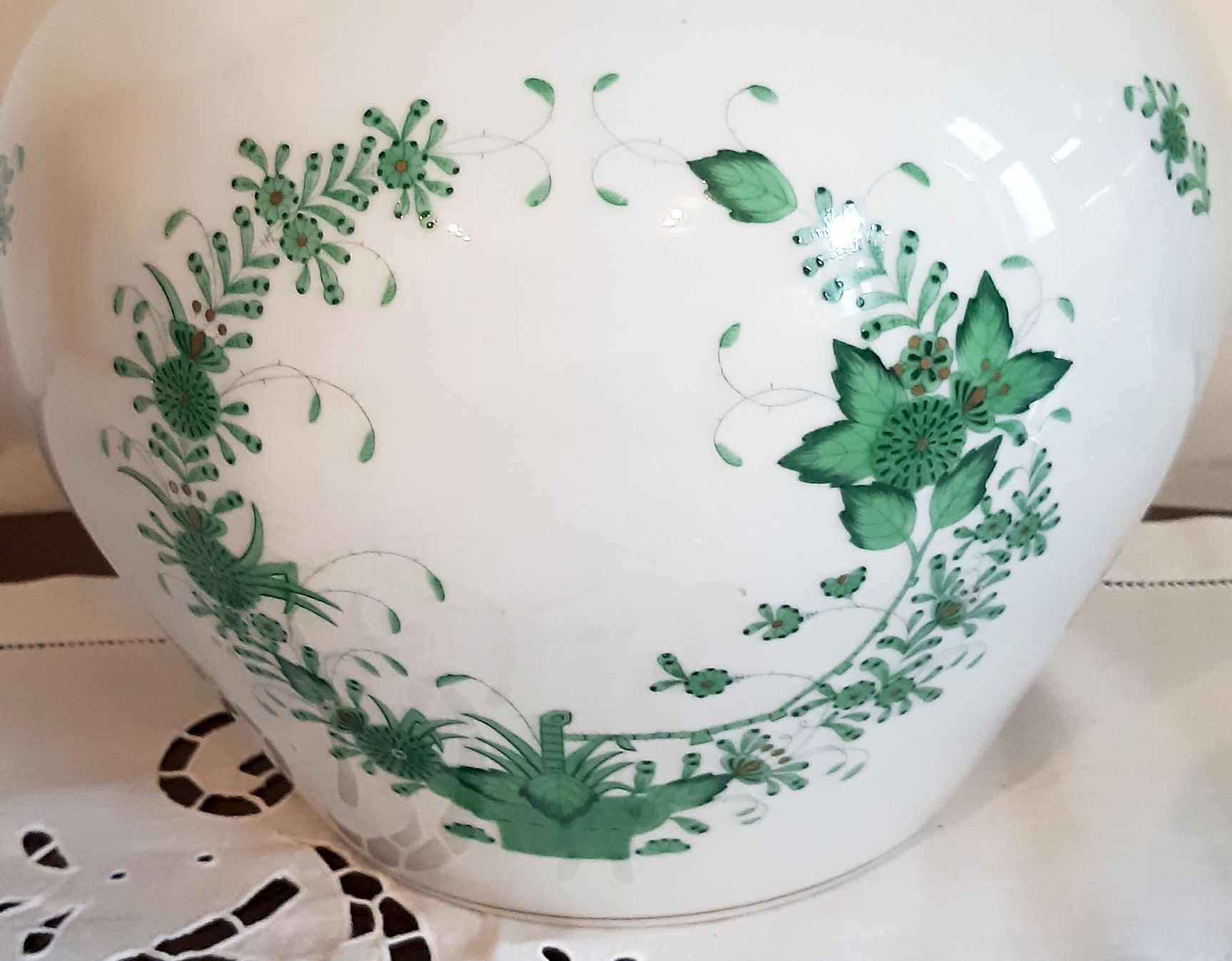 Herendi zöld indiai kosaras nagyváza, 40 cm, hibátlan állapotban.