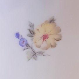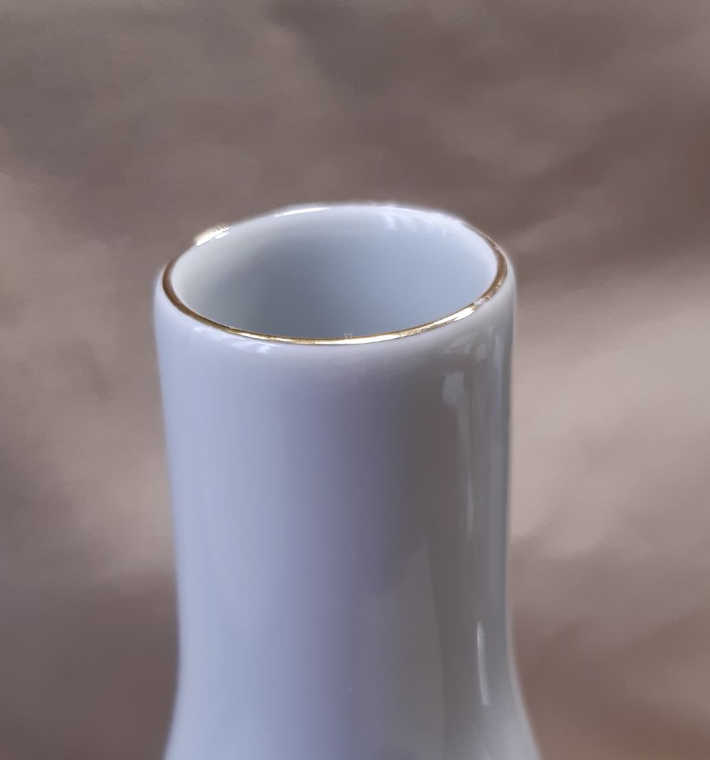 Hollóházi porcelán váza, kisvirágos mintával, aranyozott peremmel, hibátlan állapotban, magassága 25 cm.