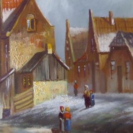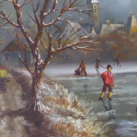 Ismeretlen osztrák festő "VR" - Korcsolyázók (32x45 cm)