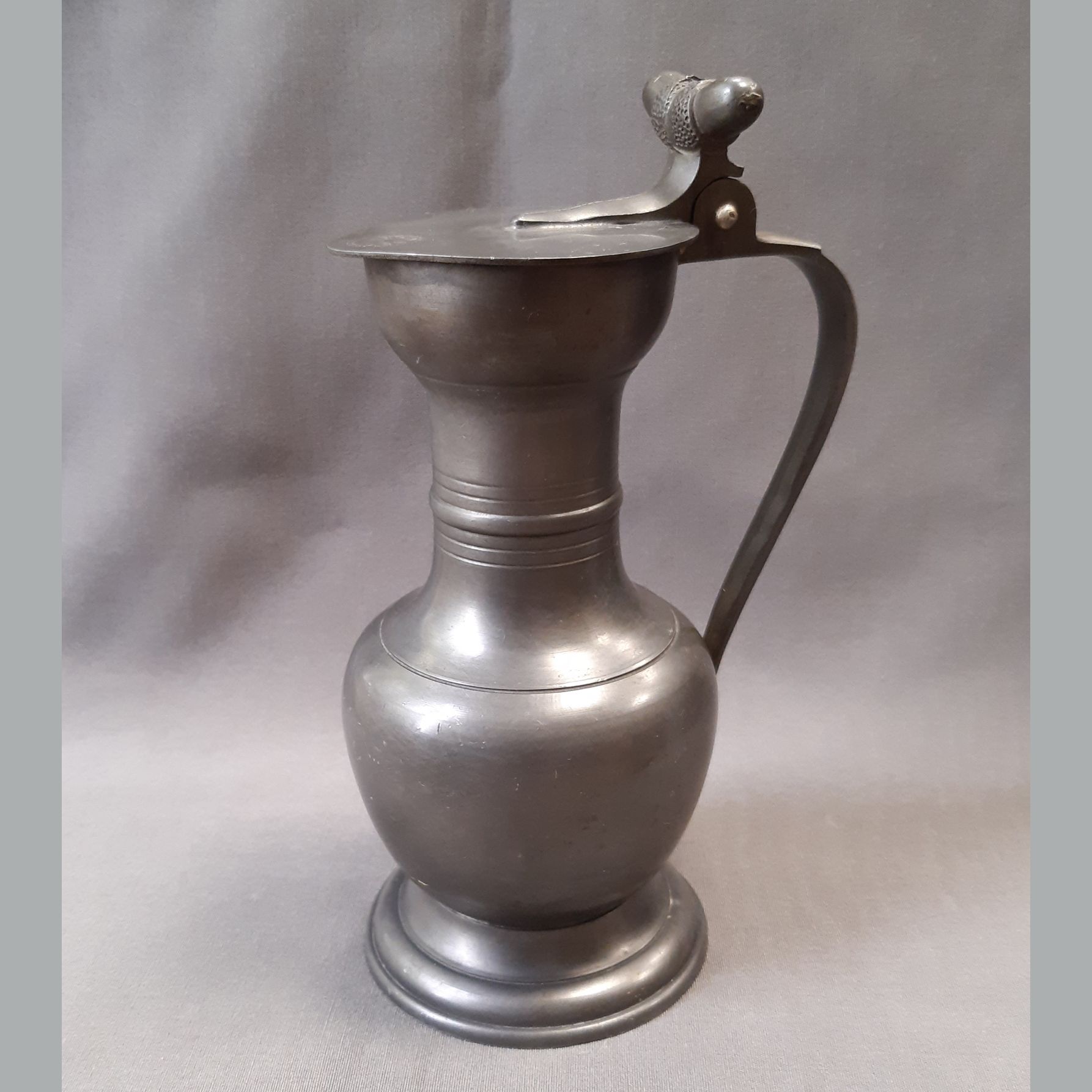 Makkos díszítésű, holland ón fedeles kupa, korának megfelelő, jó állapotban. Jelzett: Jan van Woudenberg. Magassága 20 cm.