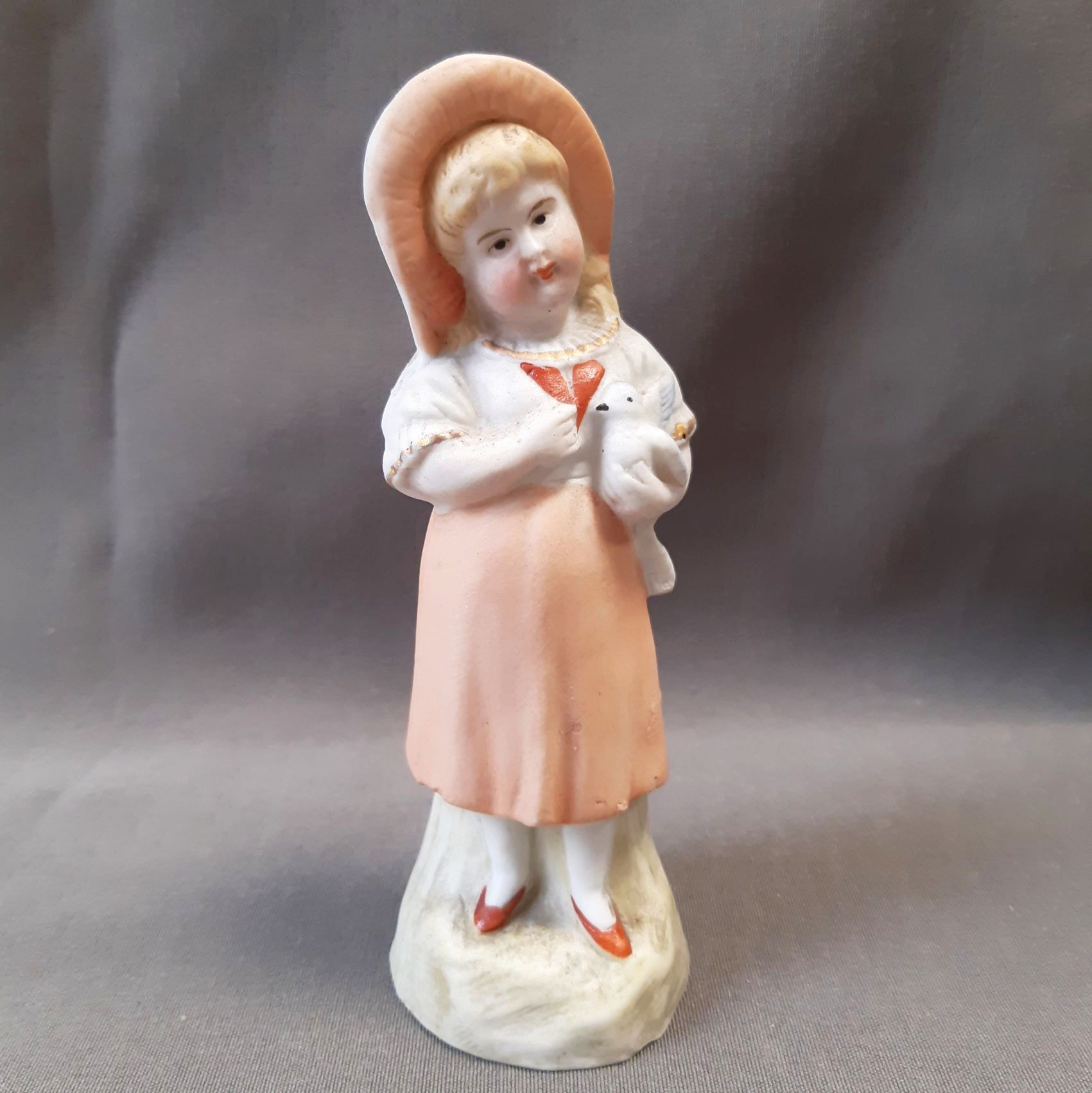 Német kerámia figura, lány galambbal. Hibátlan, 13 magas, jel nélküli.