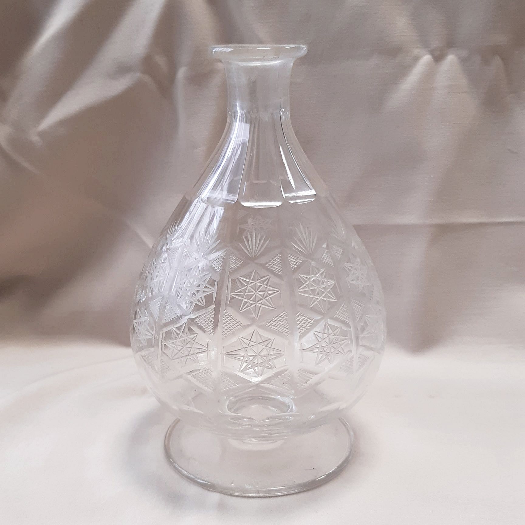 Öntöttüveg talpas palack, dugója nincs meg, kopott, de hibátlan, magassága 21 cm.