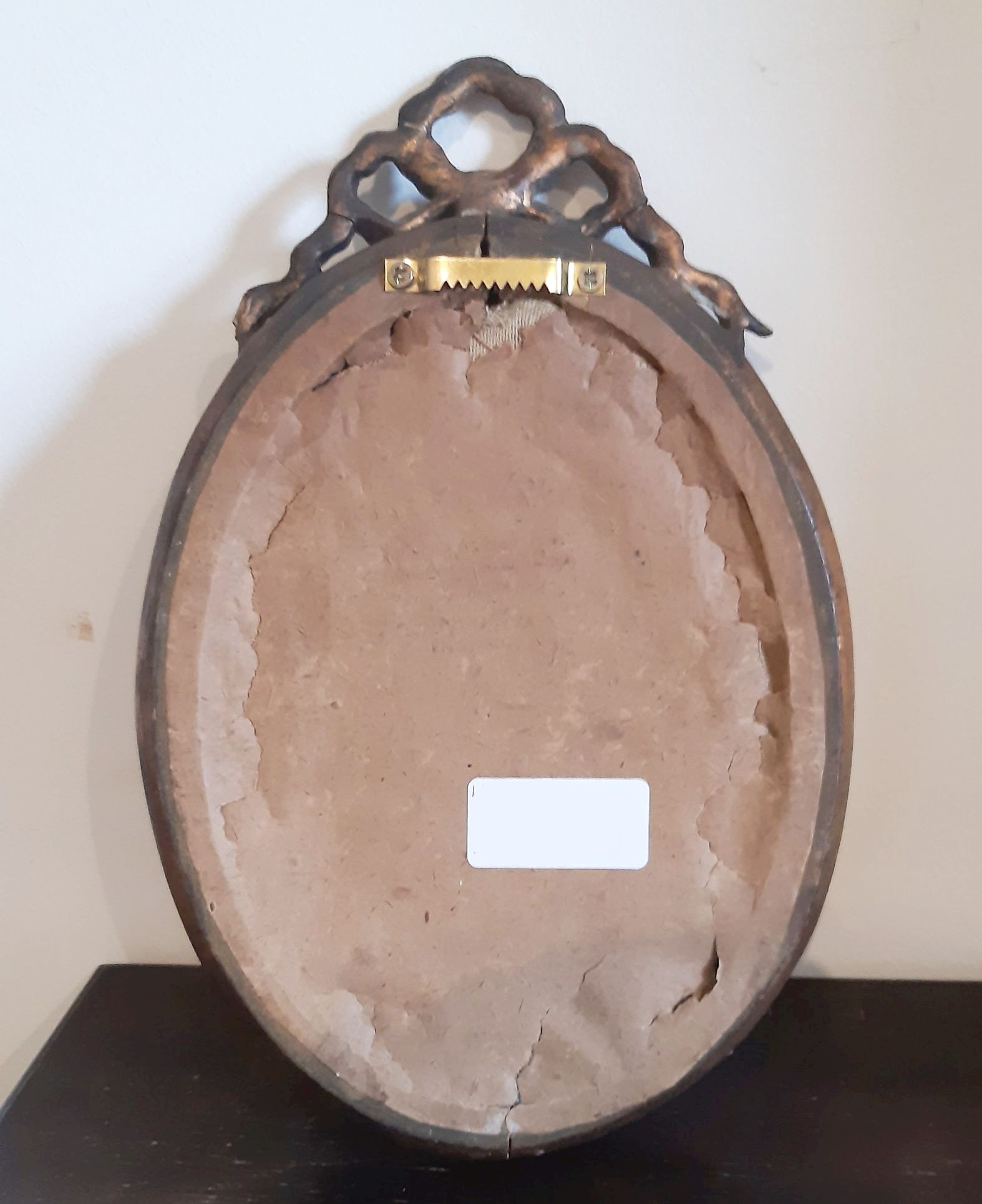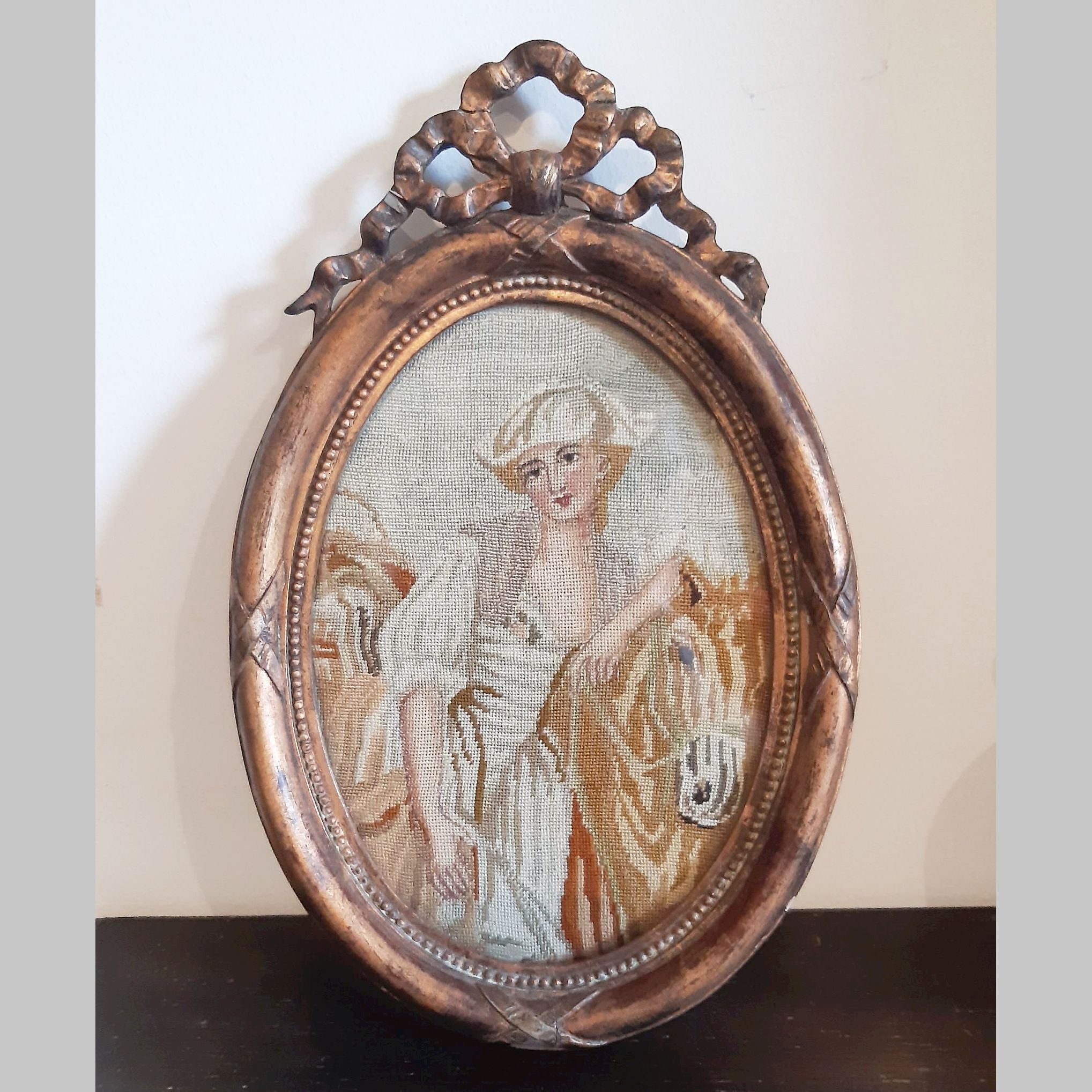 Ovális gobelin kép fakeretben, Lány lóval. Üvegezett, használt, de jó állapotban. Méretek: 0,5 x 19,5 cm
