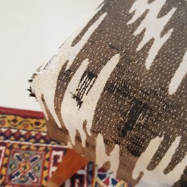 Zöld-fehér puff, kárpitja javításra szorul, falábai épek, szerkezetileg stabil. 40 magas, ülőfelülete 52x36 cm.
