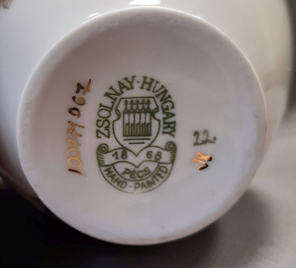 Zsolnay porcelán virágos váza, 14 cm magas, hibátlan állapotban.