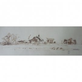Élesdy István: Faluvég (rézkarc), 30x39cm