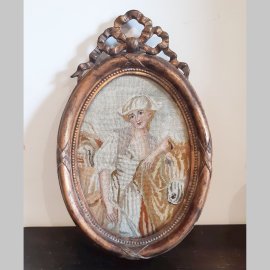 Barokk ruhás nő, gobelin keretben (90x75cm)