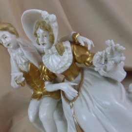 Bálozójelenetes porcelán emlék kisváza 10,5 cm
