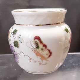 Zsolnay porcelán lepkés/pillangós virágos minikaspó